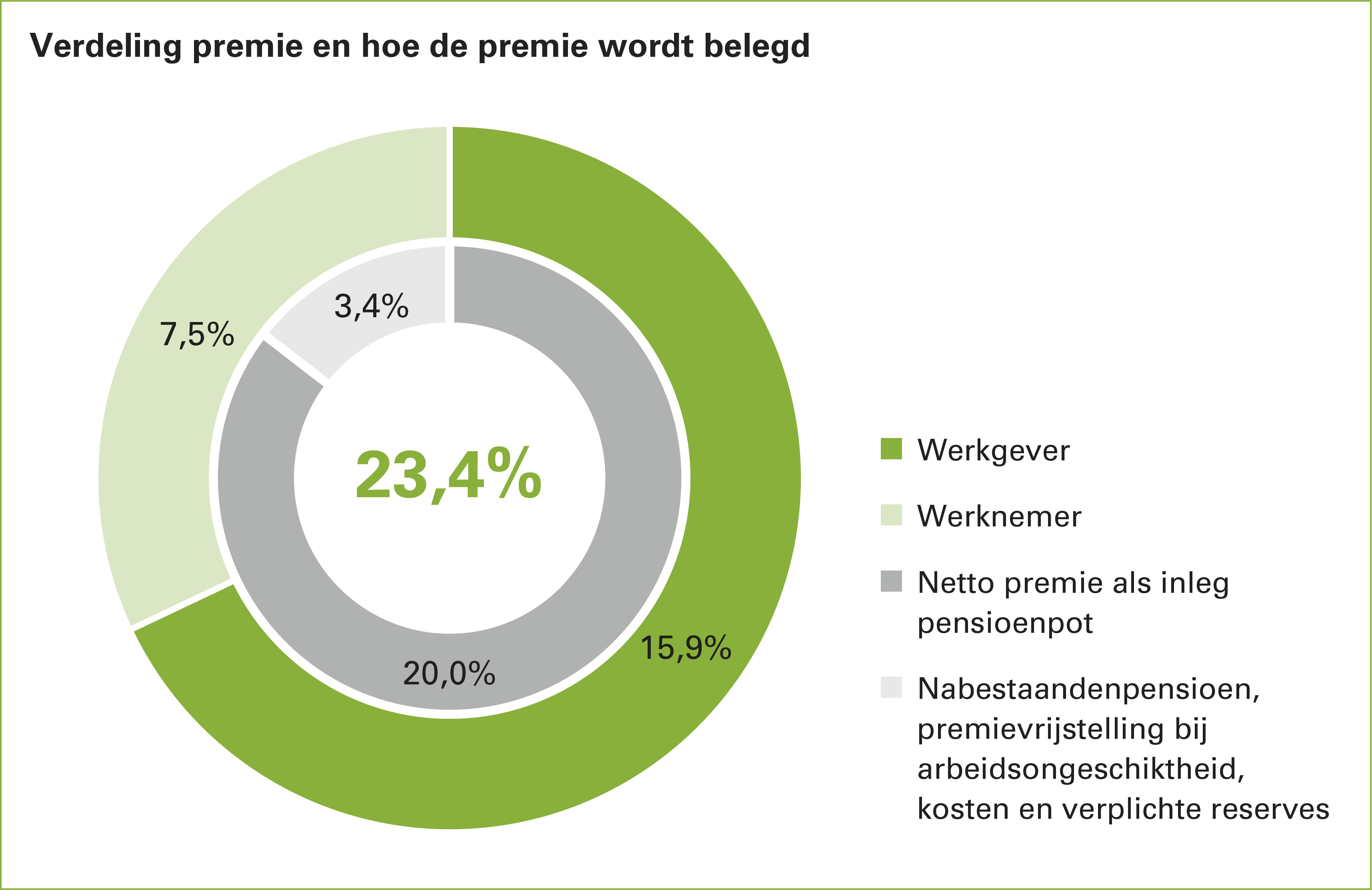 - Jij legt hiervan 7,5% in. Jouw werkgever legt 15,9% in.